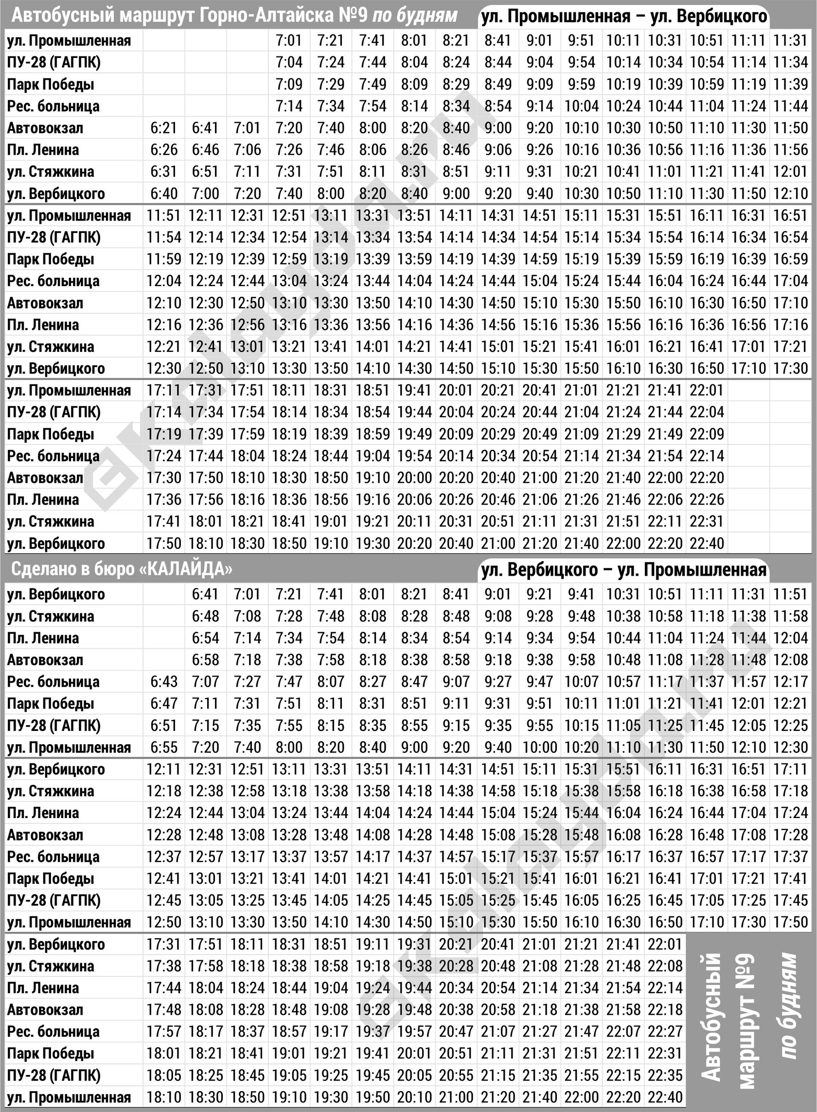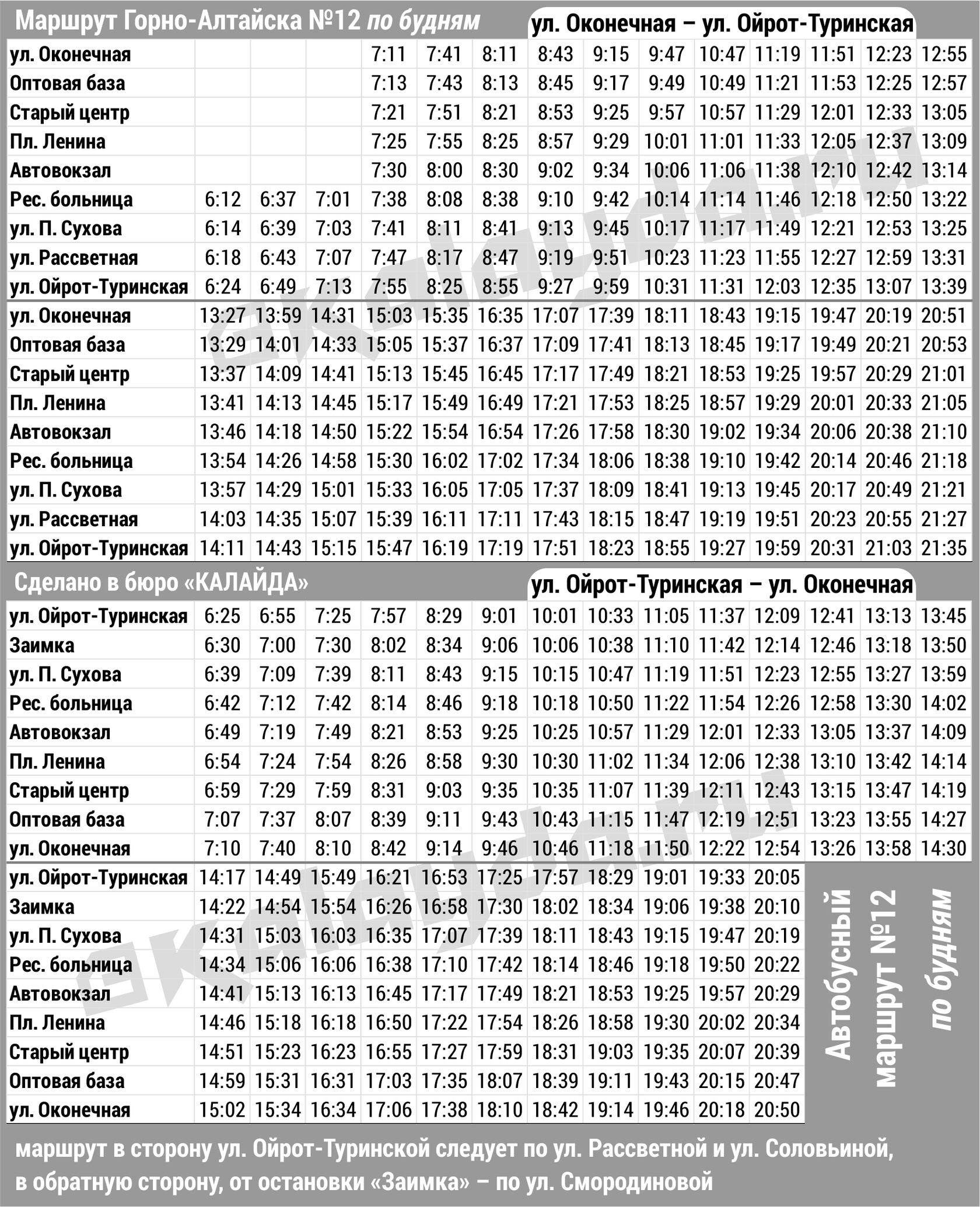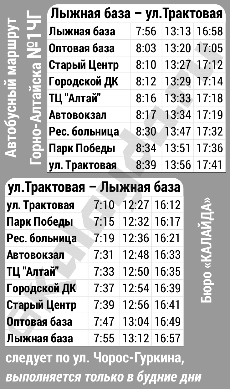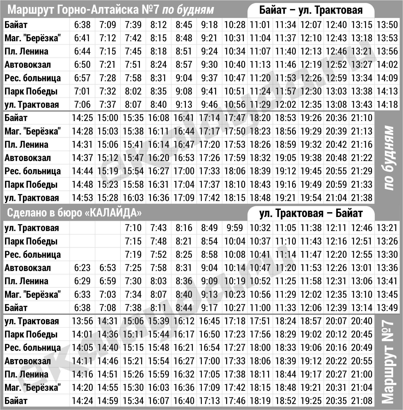 РАСПИСАНИЕ городских автобусов Горно-Алтайска (будние дни)
