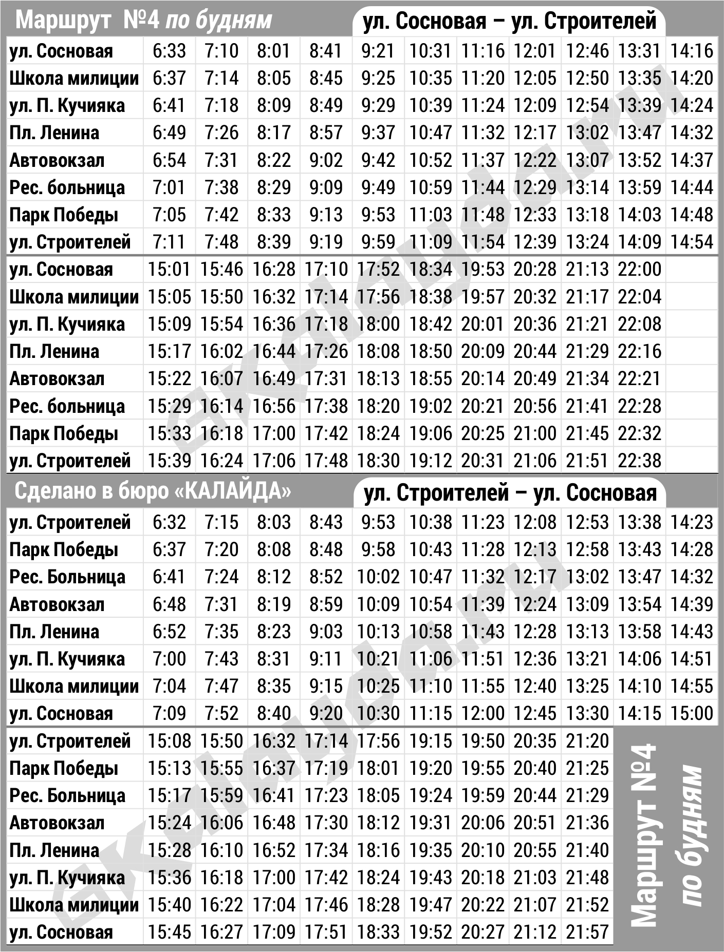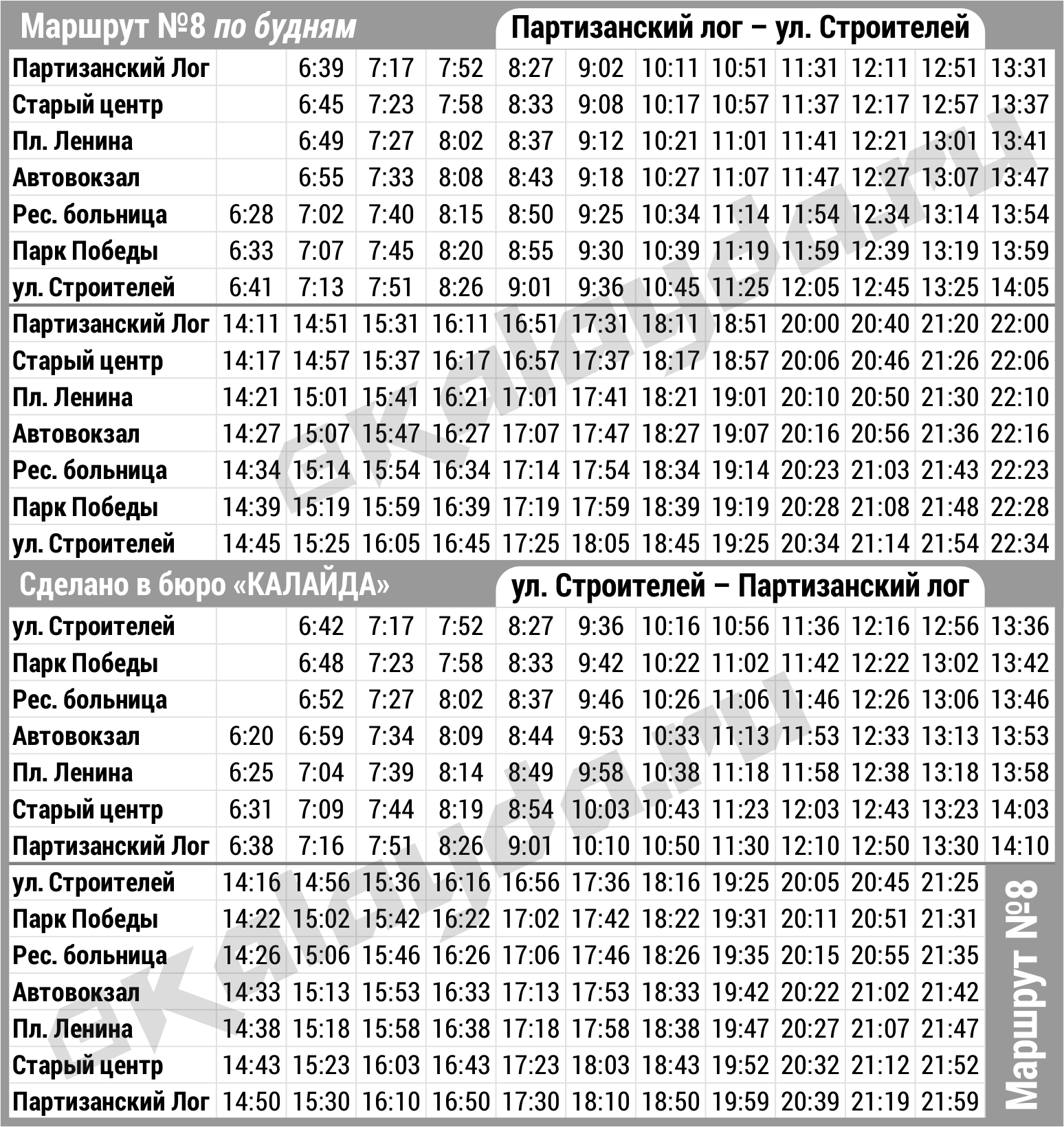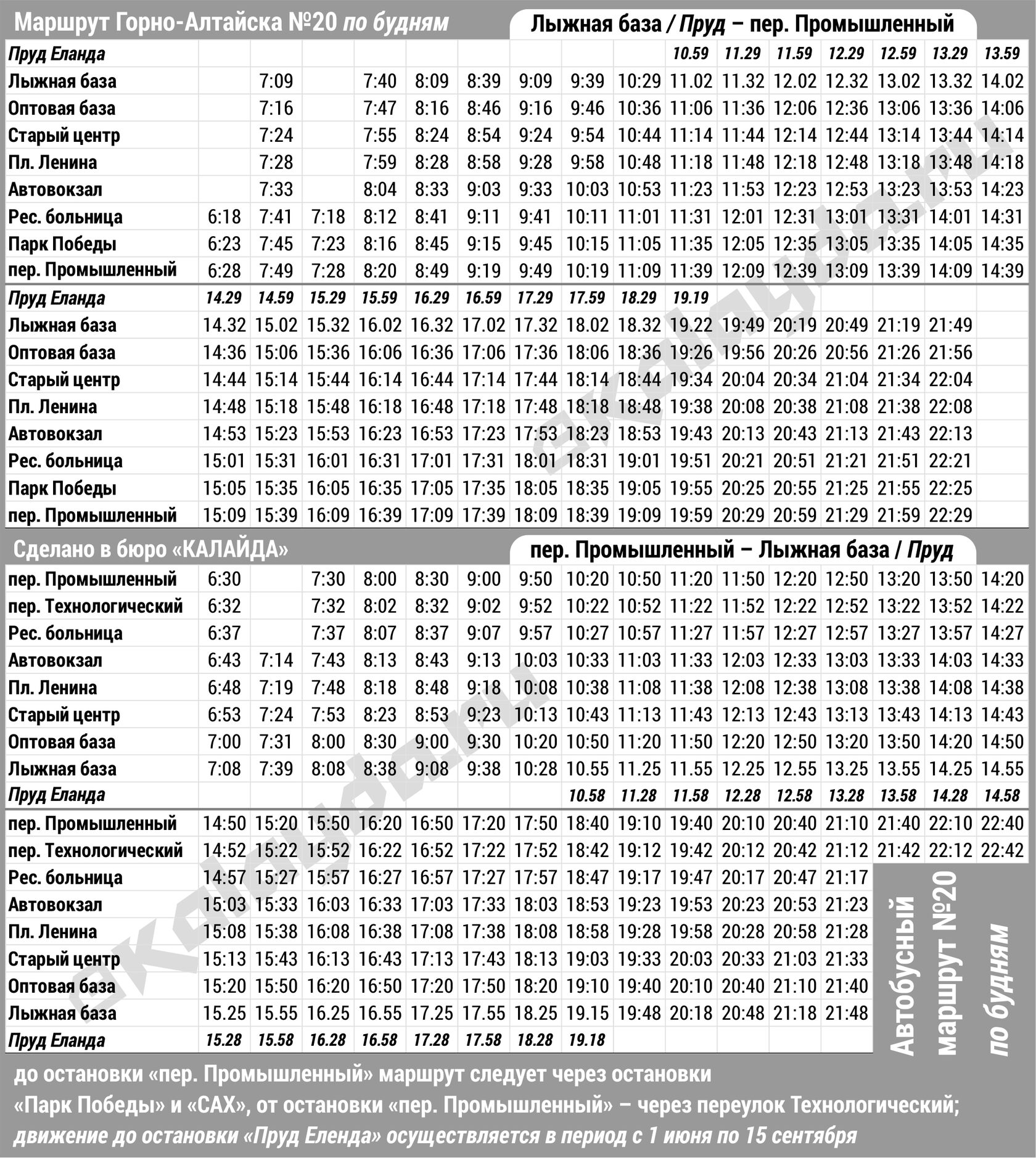 РАСПИСАНИЕ городских автобусов Горно-Алтайска (будние дни)