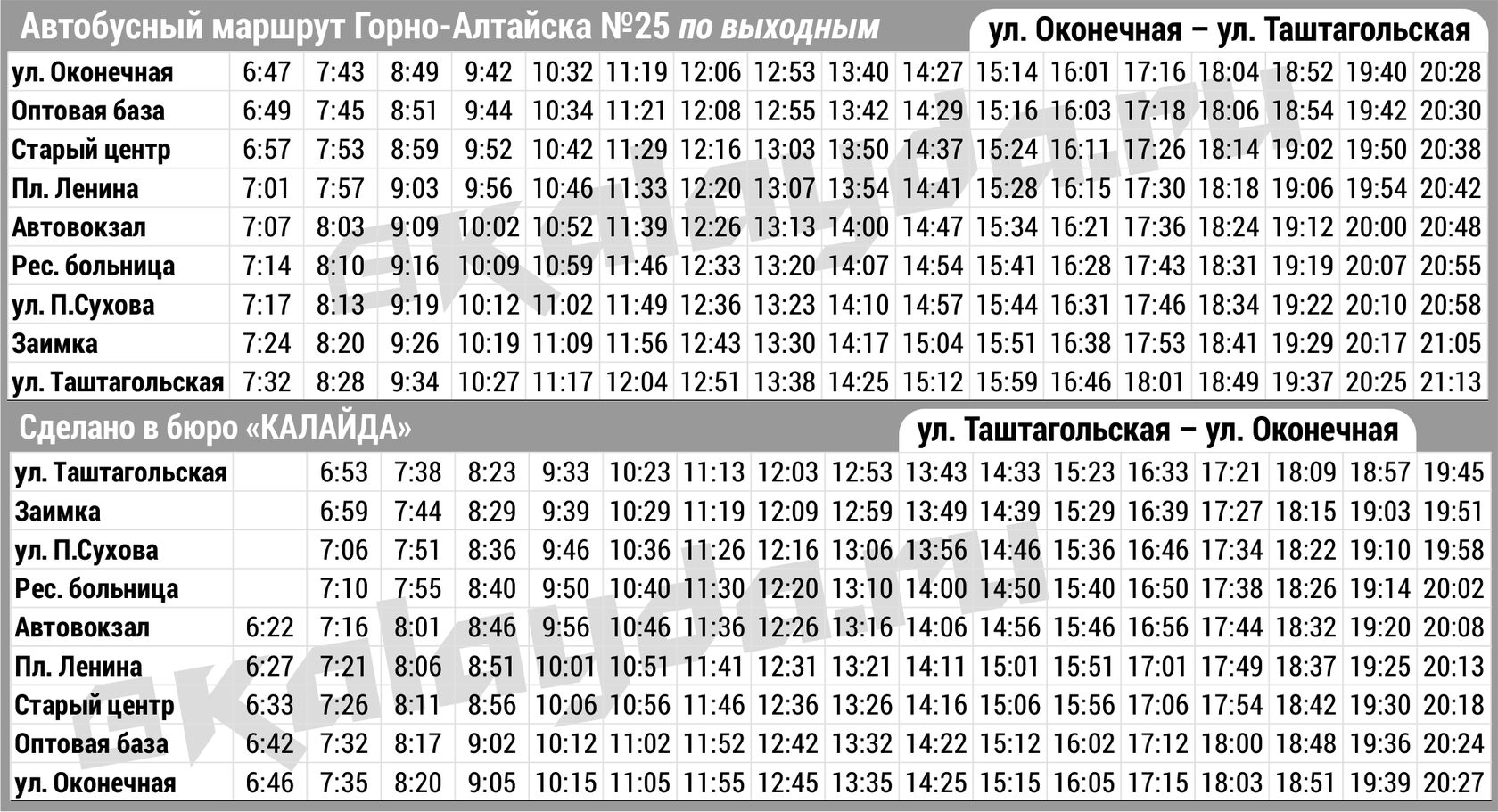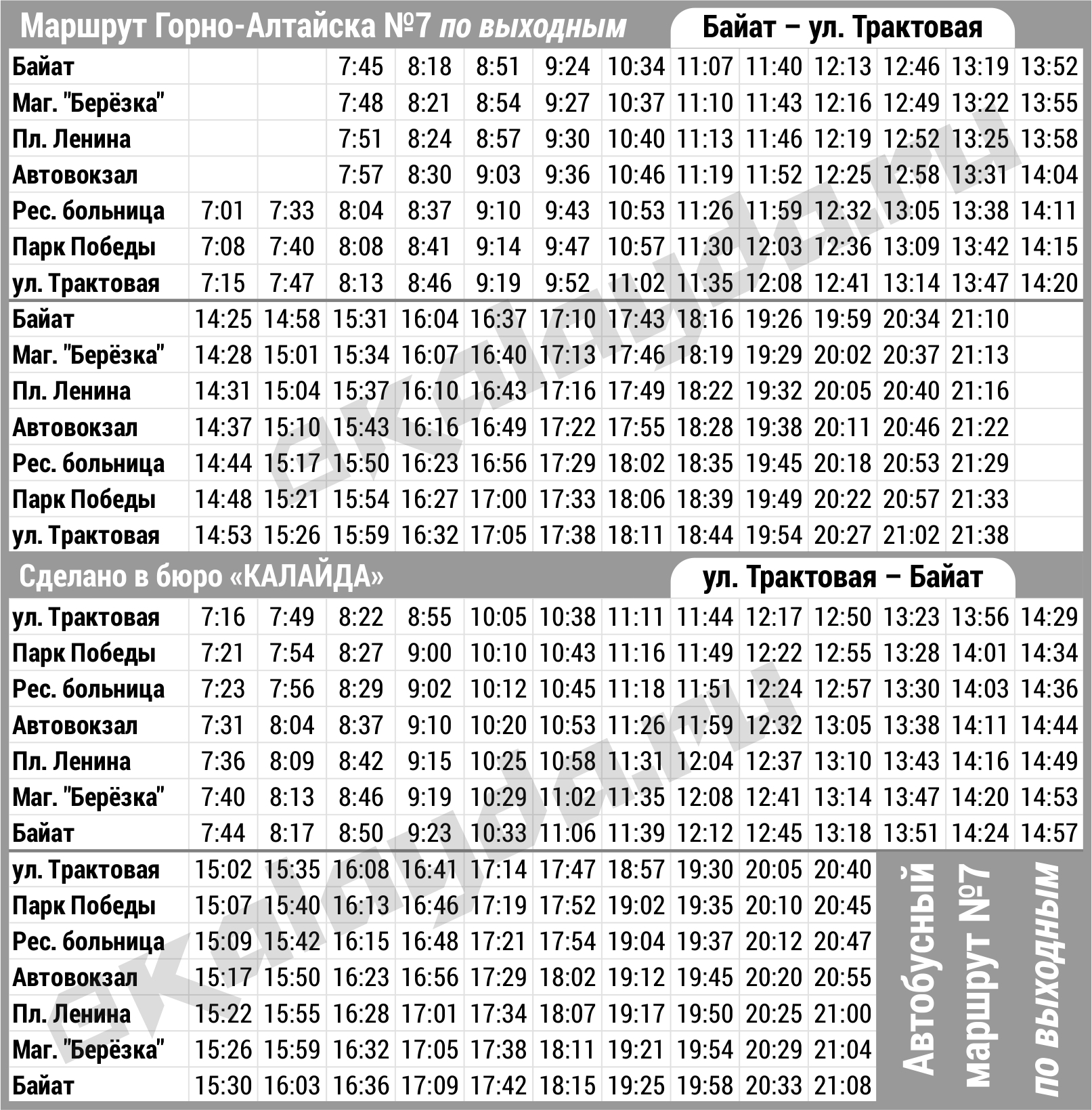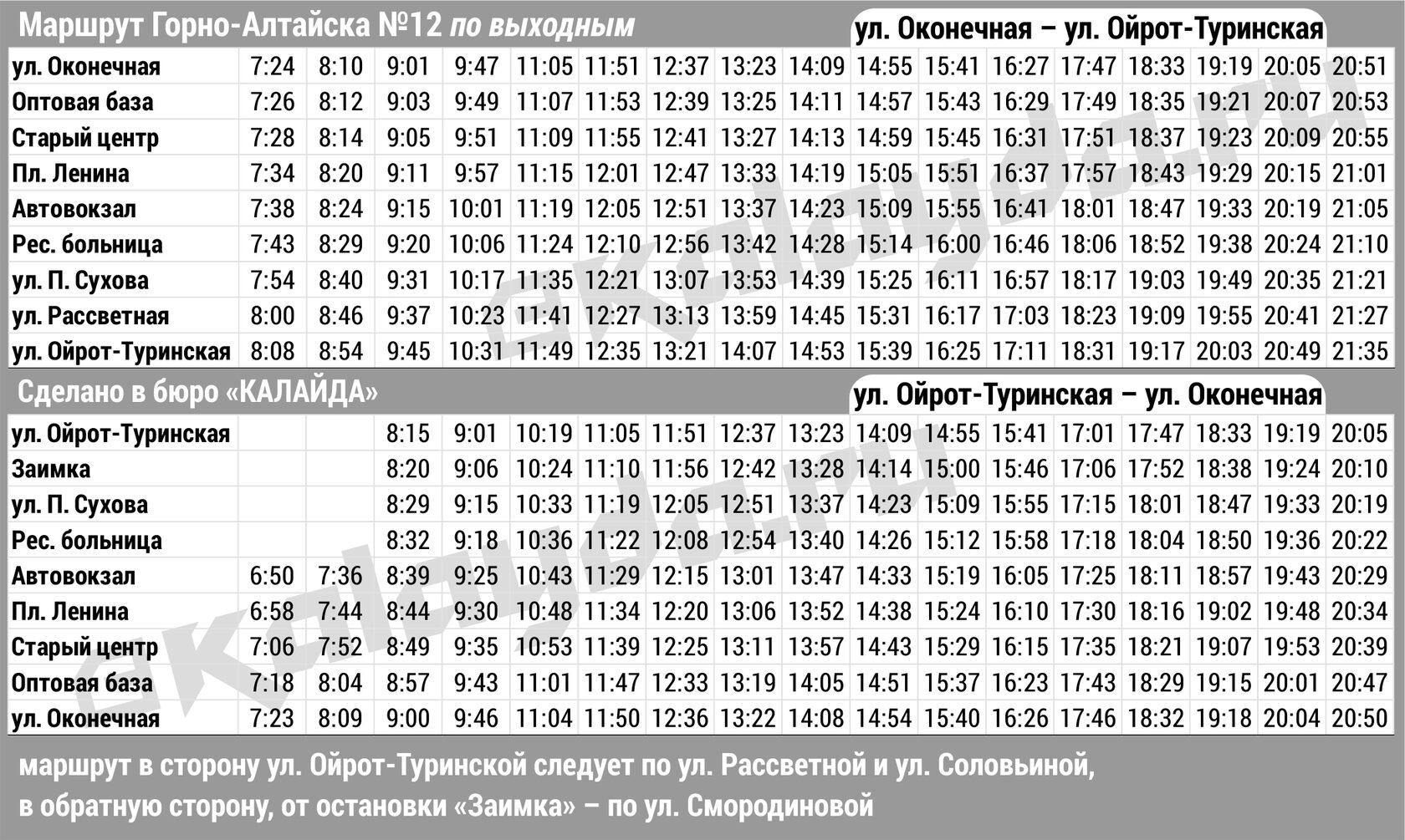 РАСПИСАНИЕ городских автобусов Горно-Алтайска (выходные дни)