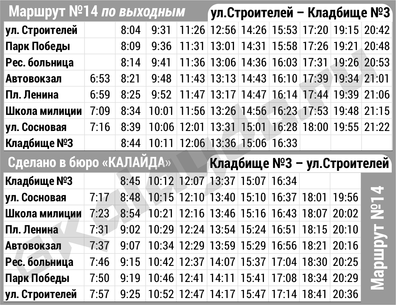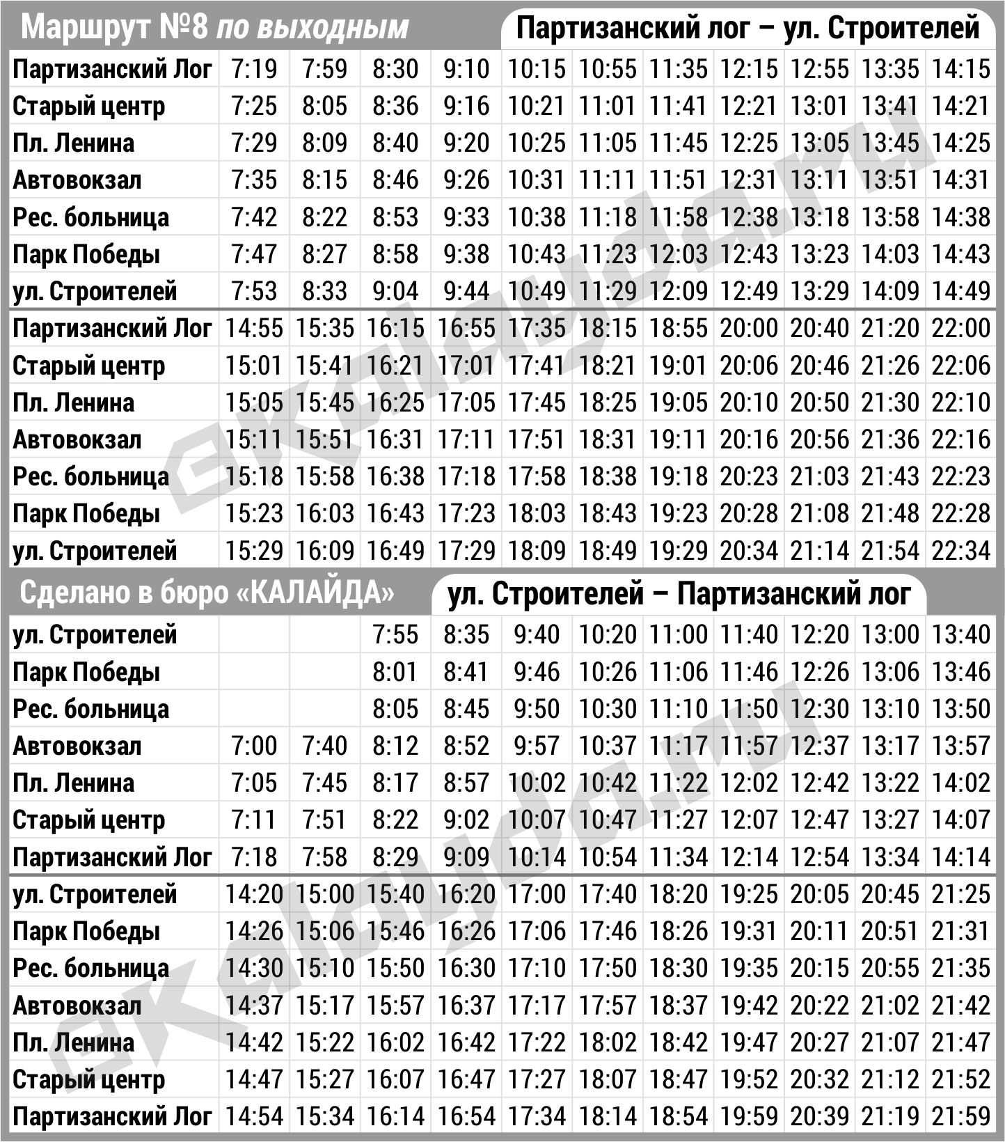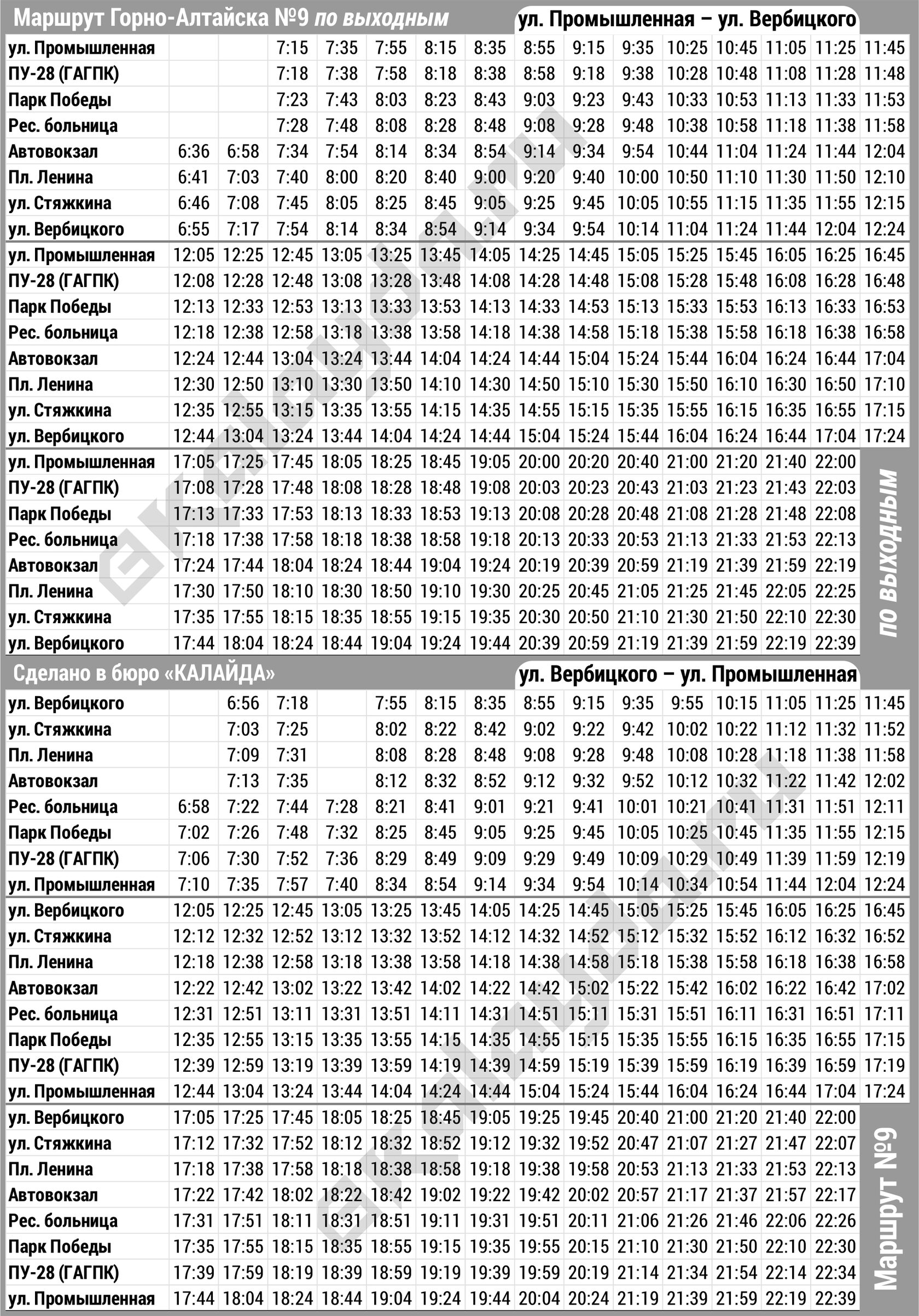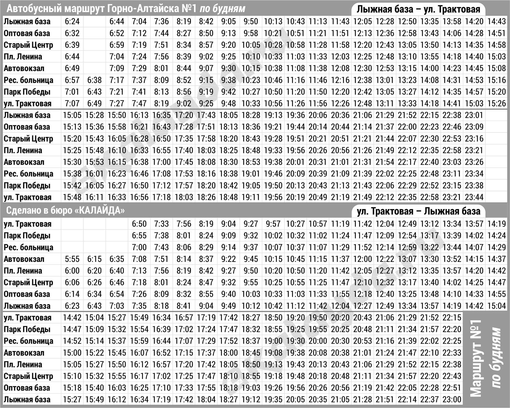 РАСПИСАНИЕ городских автобусов Горно-Алтайска (выходные дни)